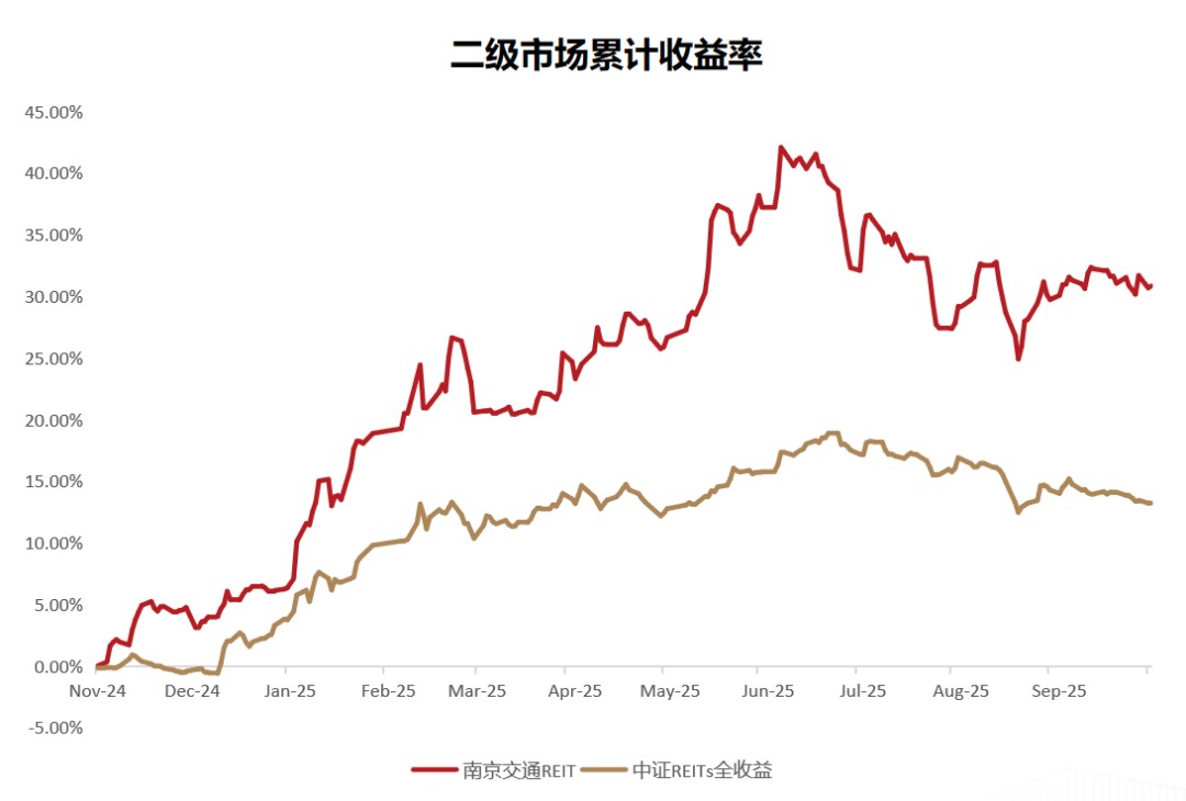 二级市场稳健显优势:截至2025年9月30日,产品上市以来二级市场涨幅为30.84%,本产品二级市场涨幅领先中证REITs全收益指数(13.18%),是投资者积极配置的优质标的,展现了市场对本产品经营能力对长期价值的认可。